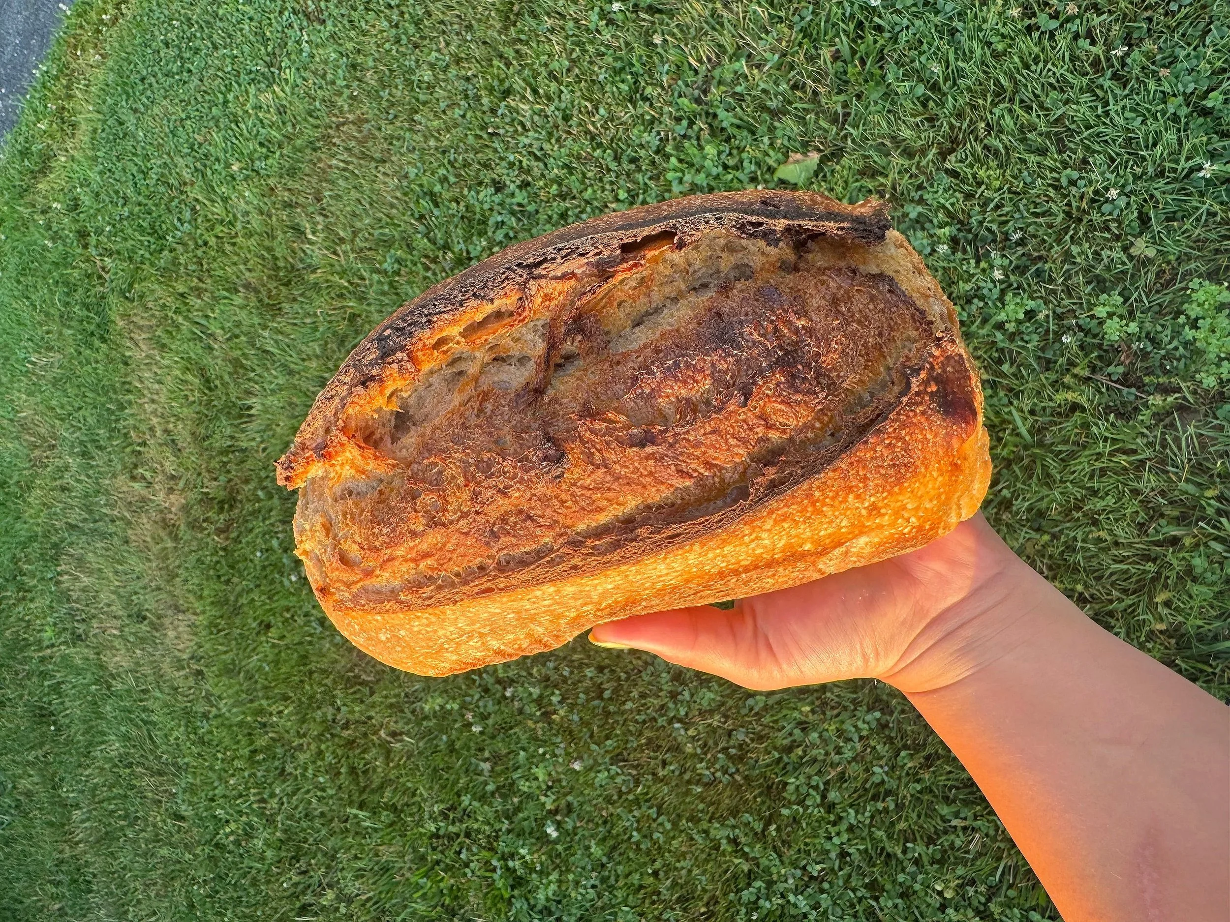 Our sourdough is crafted by hand, baked fresh, and rooted in the tradition of wholesome homestead living. Every loaf starts with three simple ingredients: flour, water, and salt.